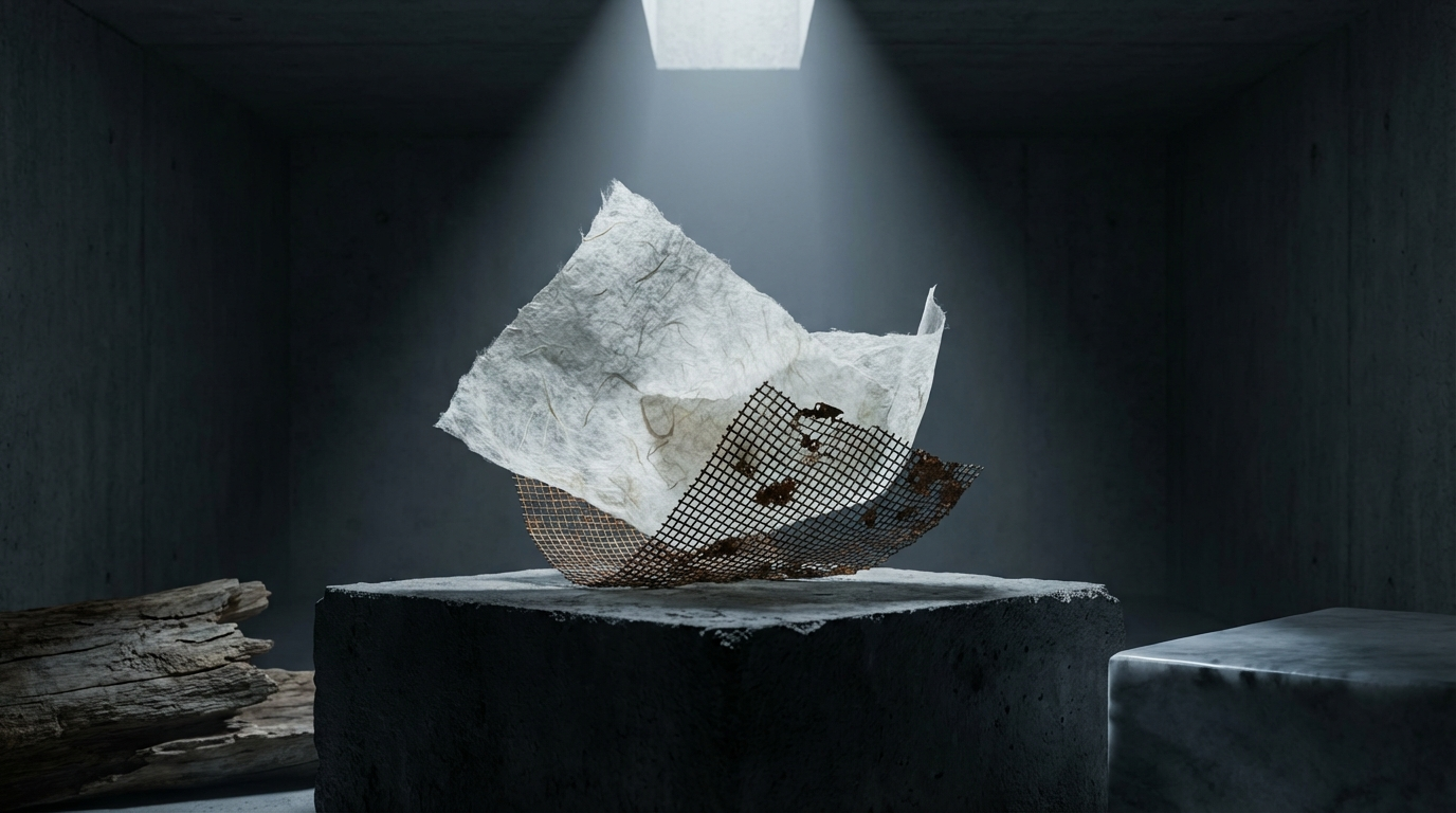 This complex, interlocking architecture creates a material of astonishing, paradoxical resilience. Hanji is a fabric of contradictions: a material so structurally sound it was historically oiled and layered to craft lightweight armor capable of repelling arrows, yet so porous and delicate it is universally described as a material that 'breathes.' Unlike Western paper, which is historically manufactured from short cotton or wood pulp fibers and heavily sized to create a passive, opaque, and dead surface for the application of ink, Hanji is an active, kinetic participant in its spatial environment. It is alive. It expands with the heavy humidity of summer and contracts in the brittle cold of winter. It responds to the ambient conditions of a room, acting as a natural regulator of moisture and air. Most importantly, it interacts with light in a way that feels distinctly biological, possessing a brutalist elegance that refuses to hide the scars and textures of its own making.
